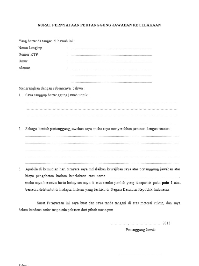 Surat Pernyataan Kecelakaan Pdf